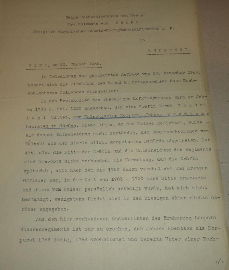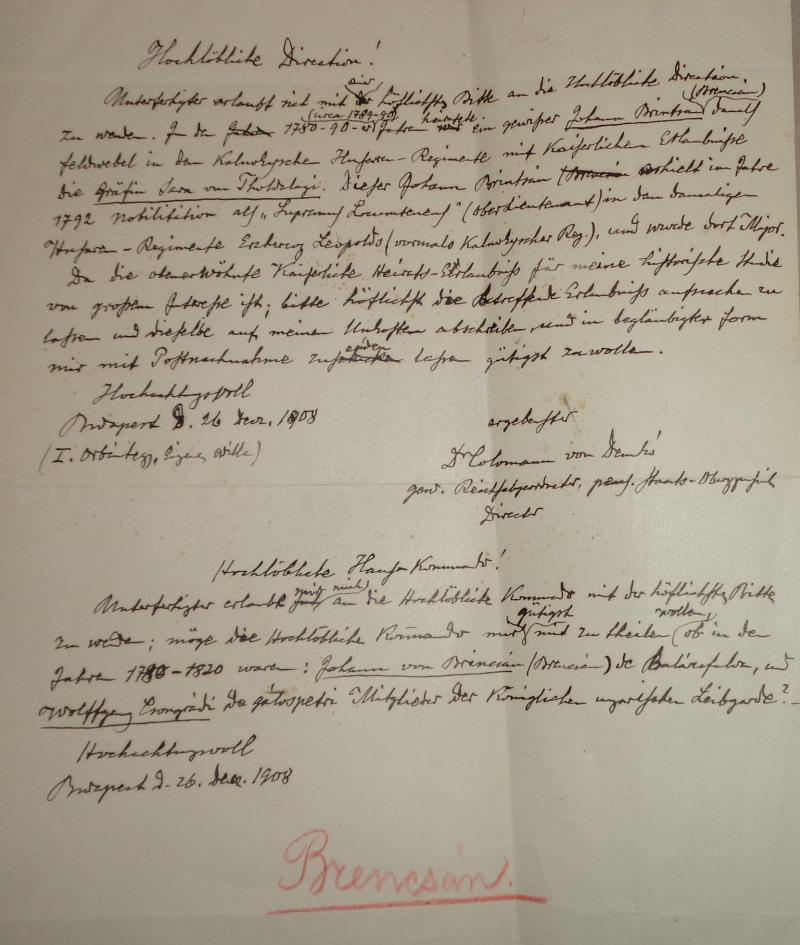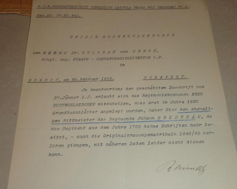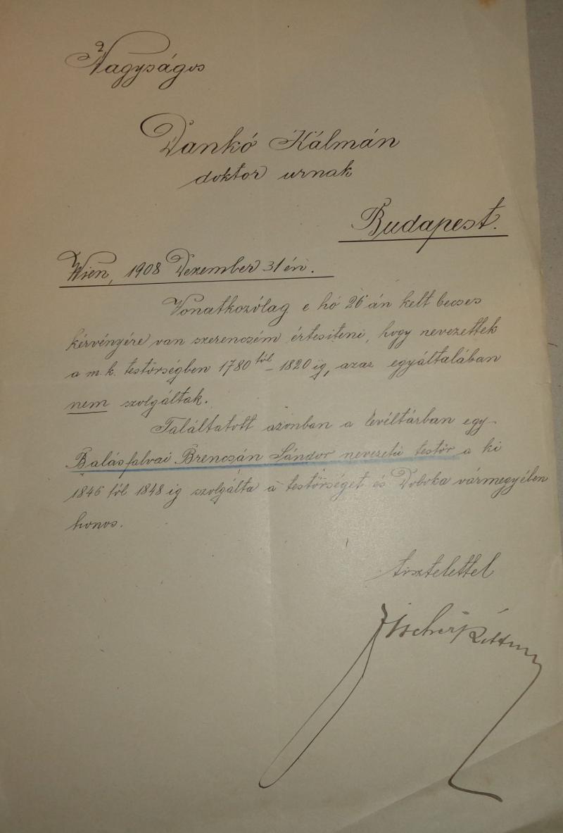 Brencsán család nemesi iratai 4 db+ hozzá tartozik Demkó Kálmán történésznek a Brencsán családdal kapcsolatos levelezése, kutatása 4 db + Woinovich Emil tábornok levele Demkó Kálmánnak a Brencsán család egy tagjával kapcsolatban.