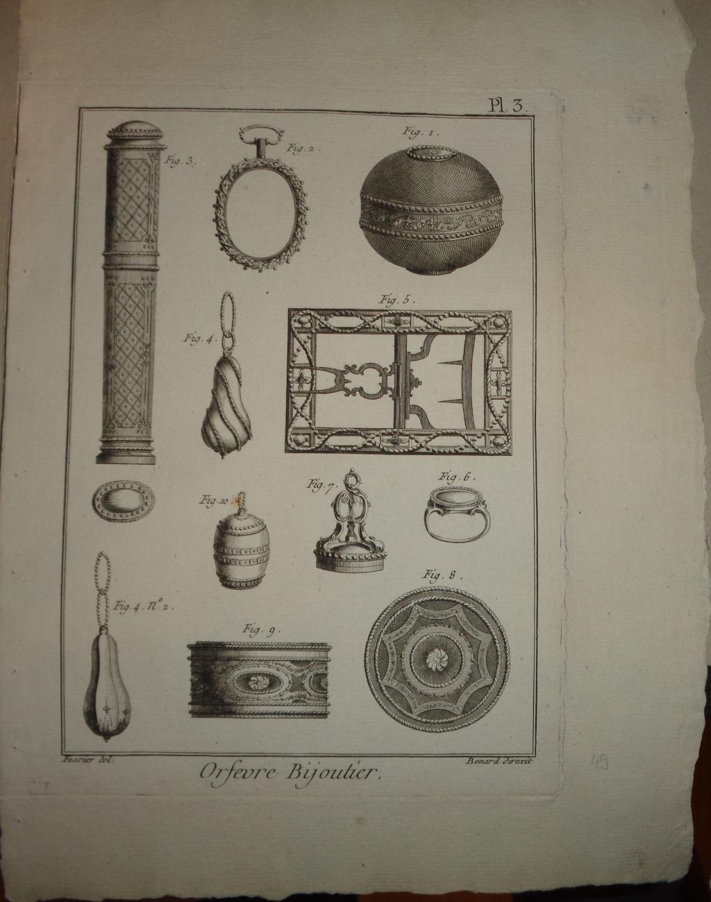 Az eredeti művet Párizsban adták ki 1751 és 1772 között, de a metszet későbbi változatokban is megjelent. A példányunk a Panckoucke-féle Encyclopédie méthodique-ban, az 1780-as években került kiadásra.