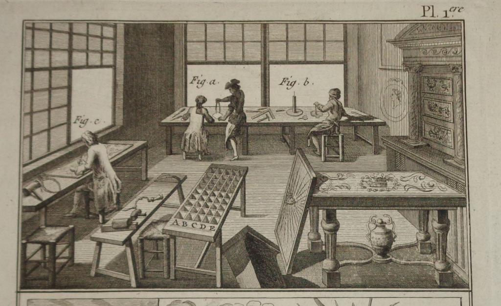 The original work was published in Paris between 1751 and 1772, but the engraving also appeared in later versions. Our copy was published in the 1780s, in the Encyclopédie méthodique by Panckoucke.
