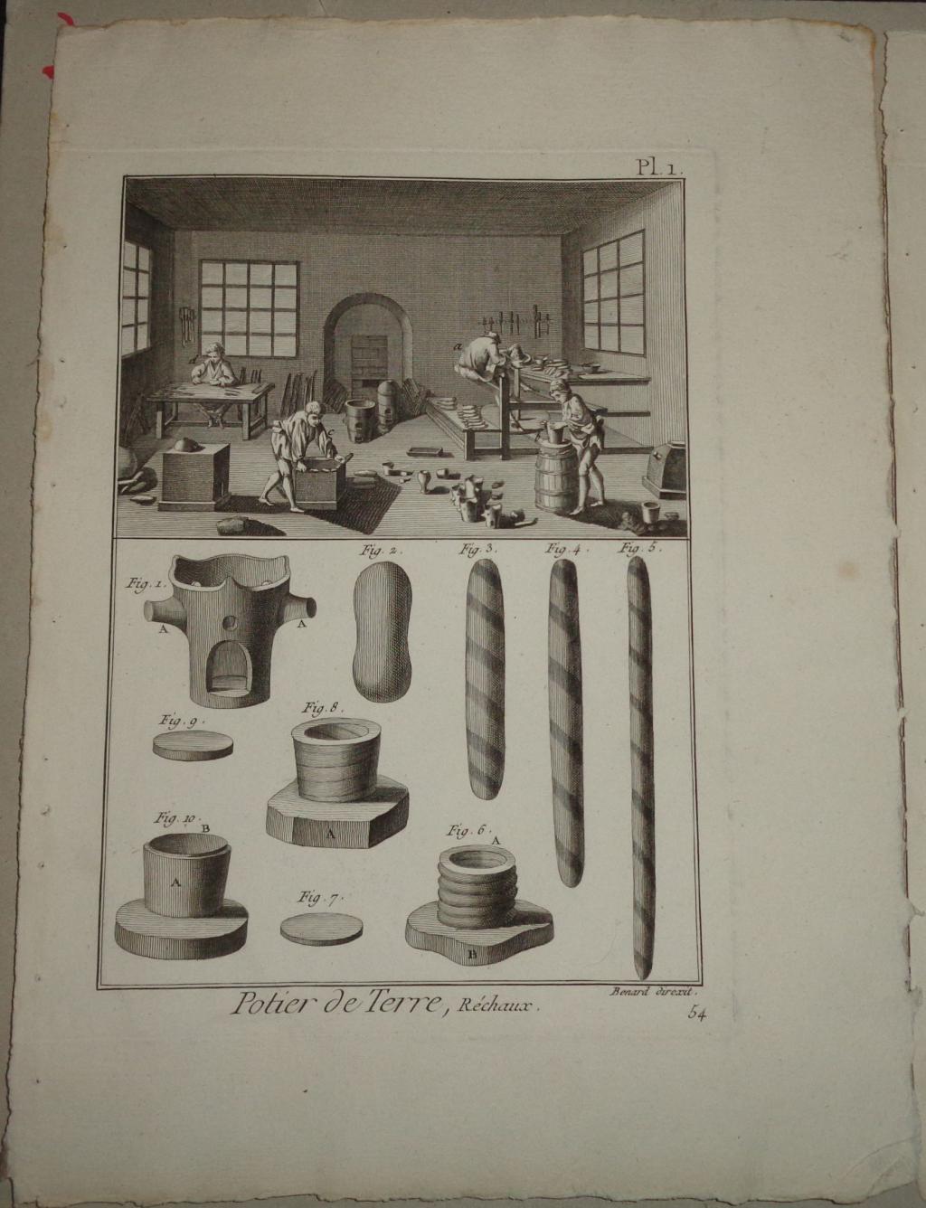 profession, industry history put into the basket Robert Bénard (1734–1777): Potier de Terre, Réchaux. I-IX. (Fazekas, agyag égető)-(Pottery craft).