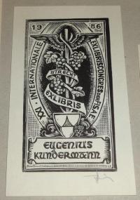 me5185. metszet/Ex libris, kisgrafika/magyar berak a kosárba Várkonyi Károly: Eugenius Kundermann.1986. fametszet.méret: 11x6 cm. lapméret: 14x8 cm. ár: 600 FORINTKézzel szignált!