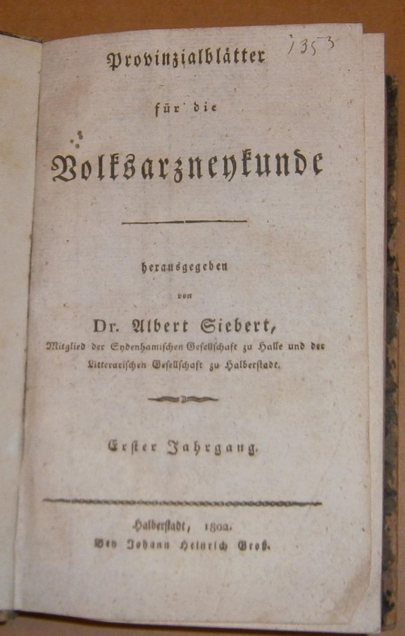 PROVINZIALBLäTTER FüR DIE VOLKSARZNEIKUNDE. ERSTER JAHRGANG I-III. HEFTE.