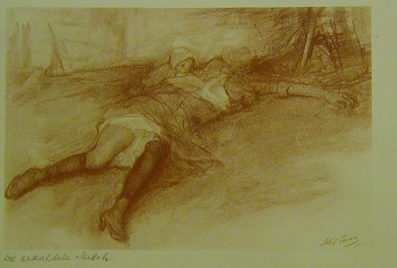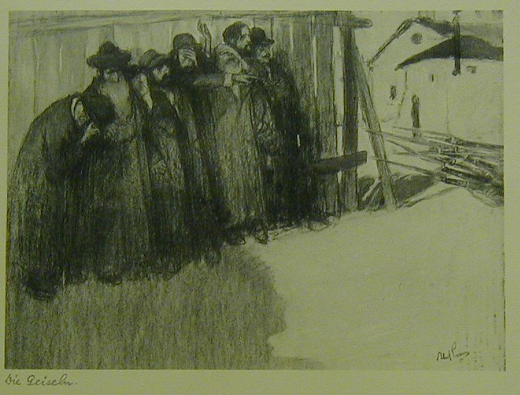 Abel Pann (Fefferman), Painter. b. 1883, Latvia. Studies: 1898 Art School, Odessa; with Yehuda Pan, teacher of Chagall, Paris; 1903 Grande Chaumiere, Paris. Teaching: 1913 Bezalel, Jerusalem; 1920-24 Bezalel. 1895 Moved to Vilna and worked as lithographer. 1903 Went to Paris, exhibited in the Salons and became known as caricaturist. 1912 Met Boris Shatz who invited him to teach at Bezalel. 1914 Returned to Paris to settle his affairs, but prevented because of outbreak of war. 1916 Painted series “The Road of Tears”, drawings and lithographs of Russian pogroms. 1917 Went to U.S.A. where known as a Jewish artist. 1920 Returned to Israel. 1921 Imported a printing machine from Vienna and began printing illustrations of the Bible which he published in 1924. Died Jerusalem, 1963.