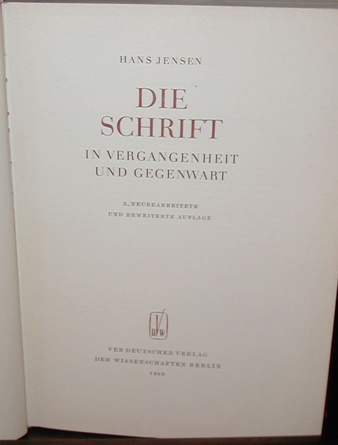 Hans, Jensen: DIE SCHRIFT IN VERGANGENHEIT UND GEGENWART
