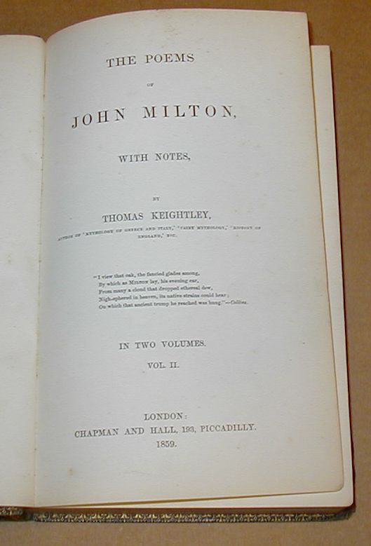 Milton, John: THE POEMS OF JOHN MILTON, WITH NOTES BY THOMAS KEIGHTLEY. TWO VOLUMES.