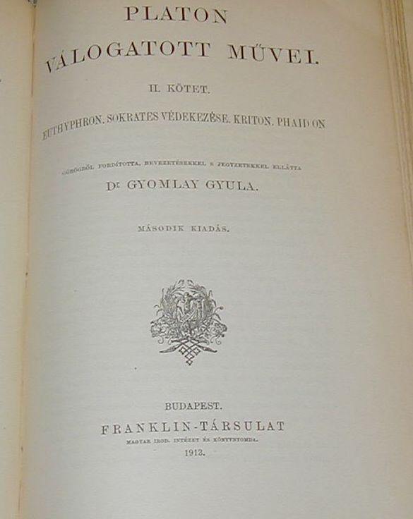 Platon: Válogatott művei. I-III. köt. (egybekötve) Fordította: Péterfy Jenő.