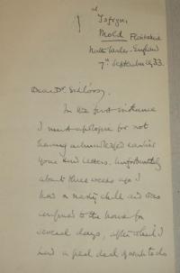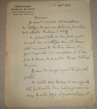 Seymour de Ricci (1881–1942) francia bibliográfus, művészettörténész, és egyiptológus által írt, és aláírt levél, valószínűleg Siklóssy Lászlónak küldve.
