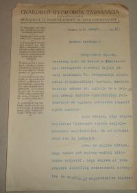 Müller Pál építész levele Vámos Ferenc építésznek. 1930.