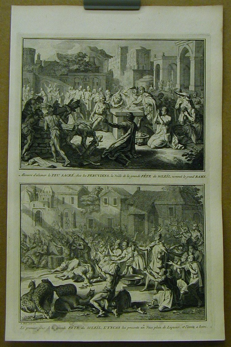Dél-Amerika berak a kosárba Picart, Bernard: Maniere d'alumer le Feu Sacré, chez les Peruviens, la Veille de la grande fete de soleil, nommeé le grand Ramy. Le premier jour de la grand fete du soleil, L'Yncas lui presente un Vase plein de liqueur, et l'invite a boire.