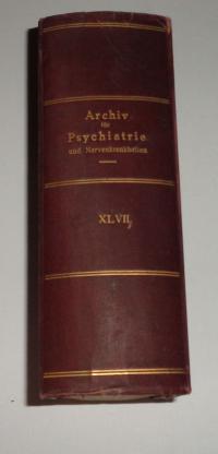 ko16222. könyv/orvosi/Pszichiátria, neurológia berak a kosárba ARCHIV FüR PSYCHIATRIE UND NERVENKRANKHEITEN 43. BAND 1-2 HEFT.Berlin. 1907. Hirschwald. 1361 p. félvászonkötés. német nyelvű.méret: 23x15 cm. kopott. ár: 6000 FORINT7+2 t. litográfia