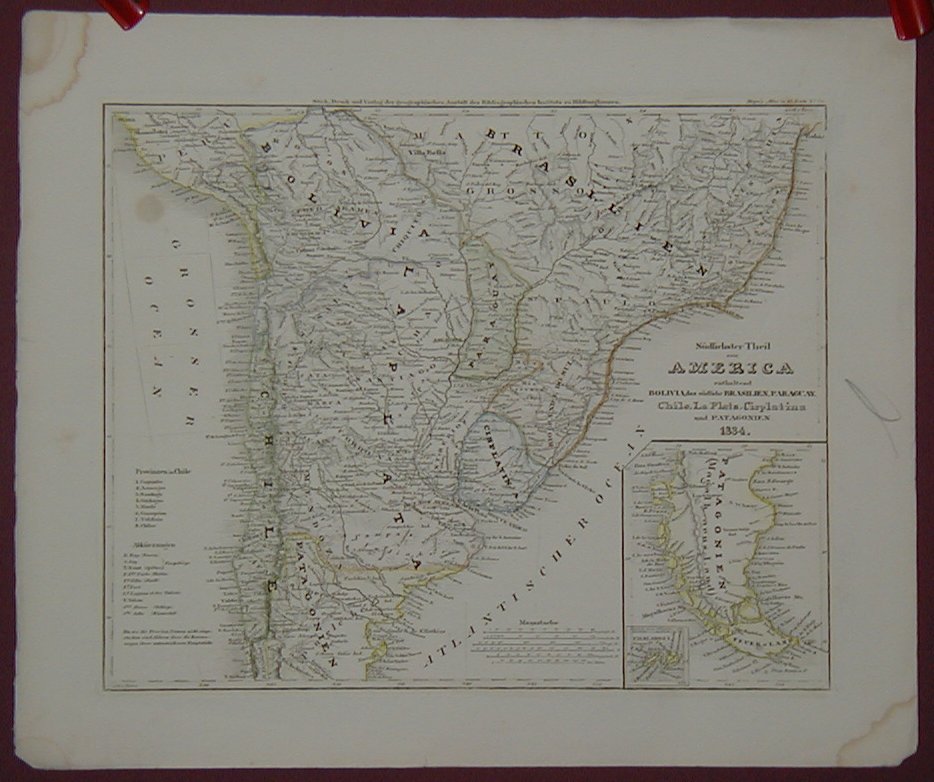 Meyer: Südlichster Theil von America enthaltend Bolivia, das südliche Brasilien, Paraguay, Chile, La Plata, Cisplatina und Patagonien (South America).